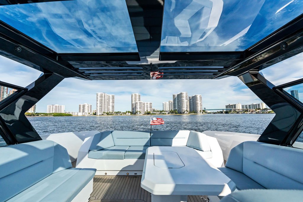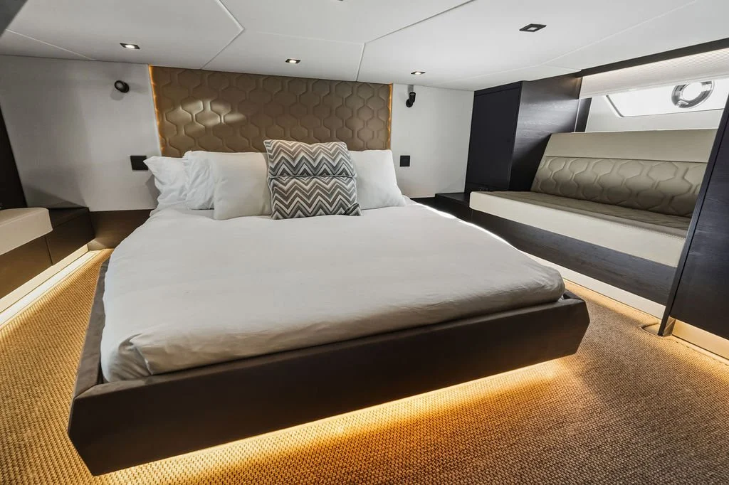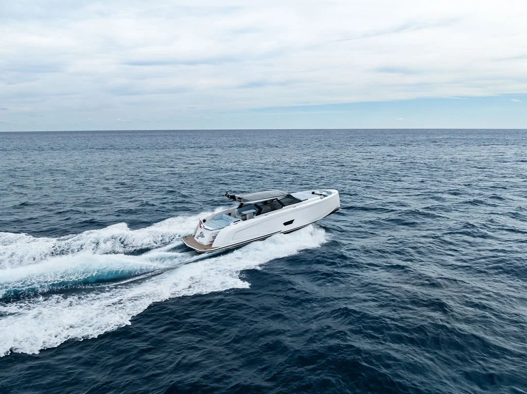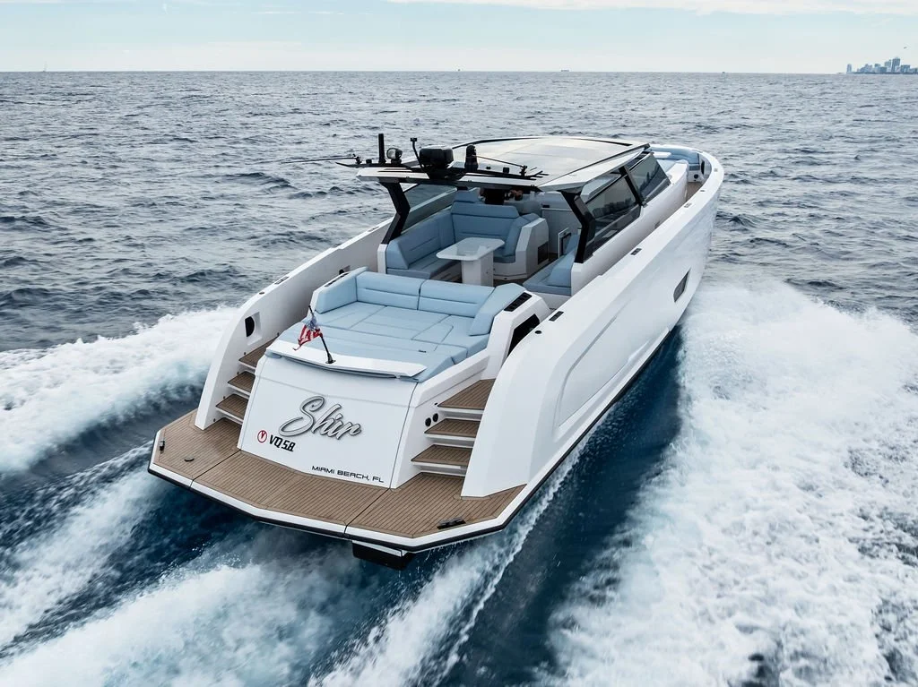 The VQ58 – Vanquish's flagship day boat – exemplifies Dutch aluminum craftsmanship at its finest. "Shir" featured upgraded Volvo IPS950 engines, Seakeeper stabilization, and a full-beam master cabin rarely found in this class. The vessel's comprehensive specification included FLIR night vision, Liebherr appliances, and Vanquish's signature superyacht-level systems integration.