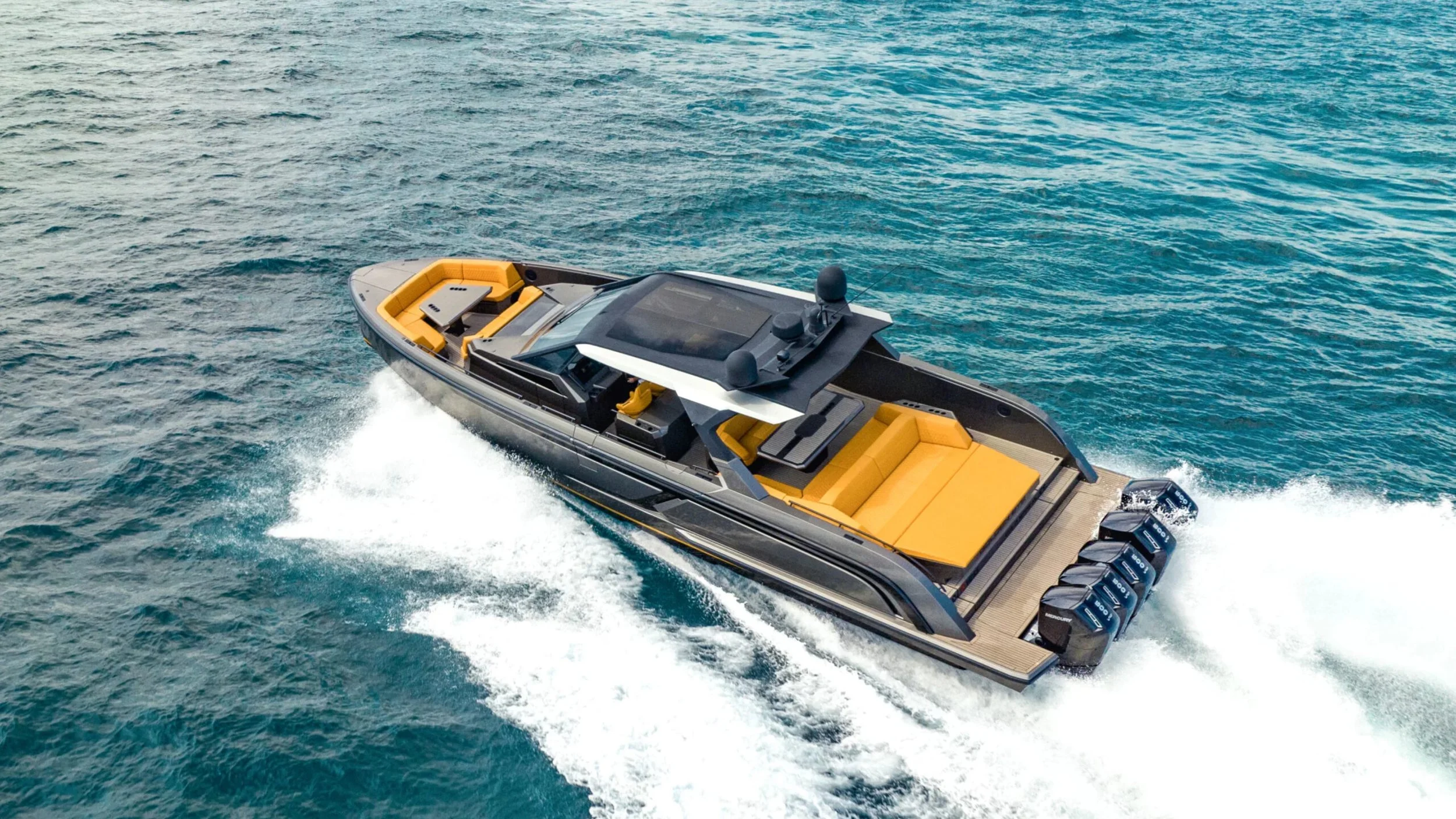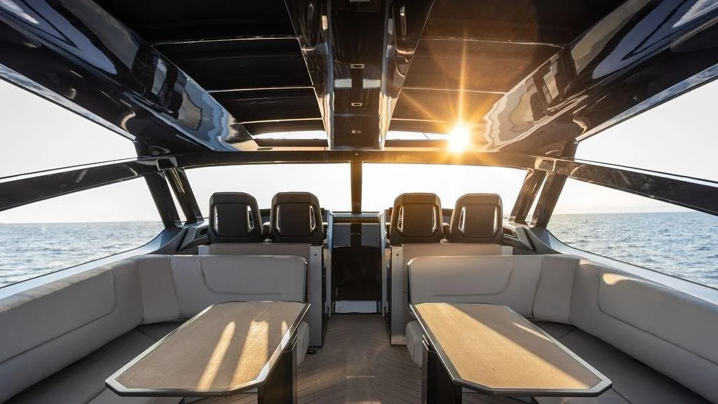 In our supporting blog—The Anatomy of a Hard Top—additional hard top support poles are usually a eyesore. Not on the Wajer 77. Here, the numerous support poles and accents are an asset to the greater design, using unorthodox intersecting lines (in multiple locations) to secure and stylize the hard top. When the support pole angles are complimented by matching accent lines in the windshield, that’s a mic drop moment. Underneath, its grand size is supported by gloss black finishes seen throughout the rest of the cockpit. The design is so pure, it could make it on this top 5 list for that alone.